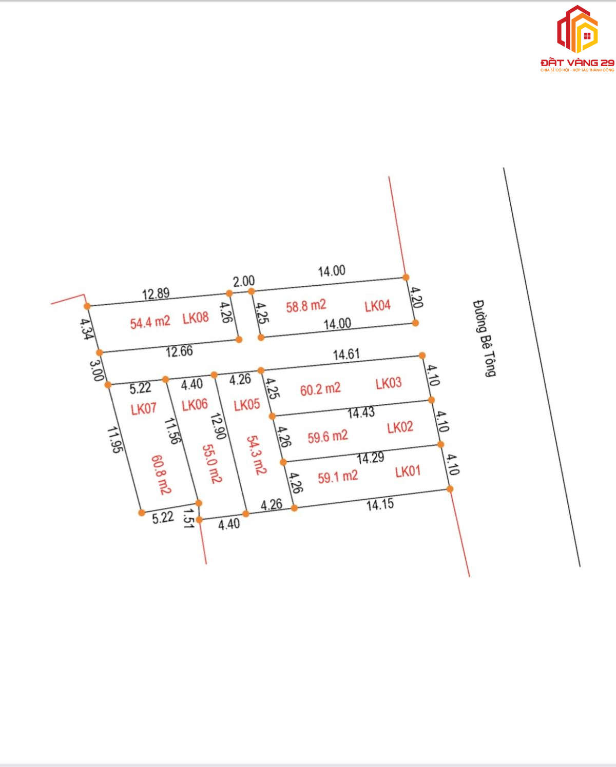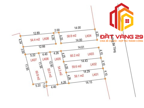 8 lô đất diện tích từ 50m2 đến 60m2 Giá cả phải chăng chỉ dưới 1ty/lô