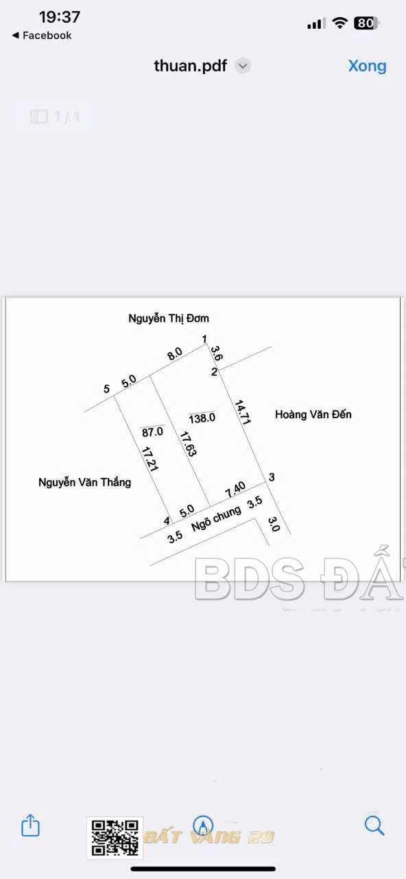 Diện tích: 87m² vuông vắn, đất ở lâu dài.