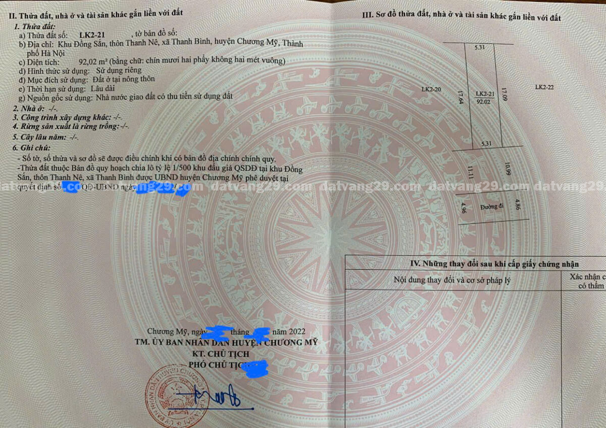 – Pháp Lý : Giấy chứng nhận QSD đất.