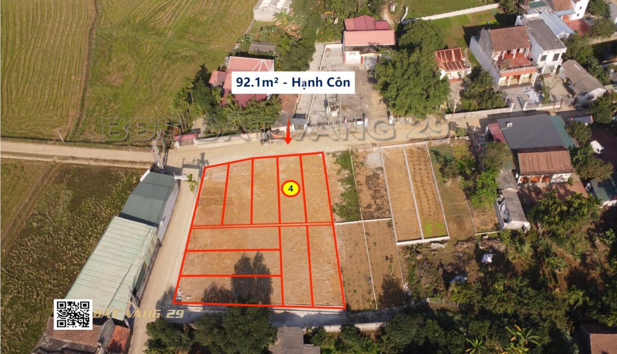 Cần bán lô đất phân lô Hạnh Côn diện tích 92.1m², vị trí đẹp, nằm trong khu dân cư hiện hữu, hạ tầng ổn định, phù hợp mua ở hoặc đầu tư sinh lời.