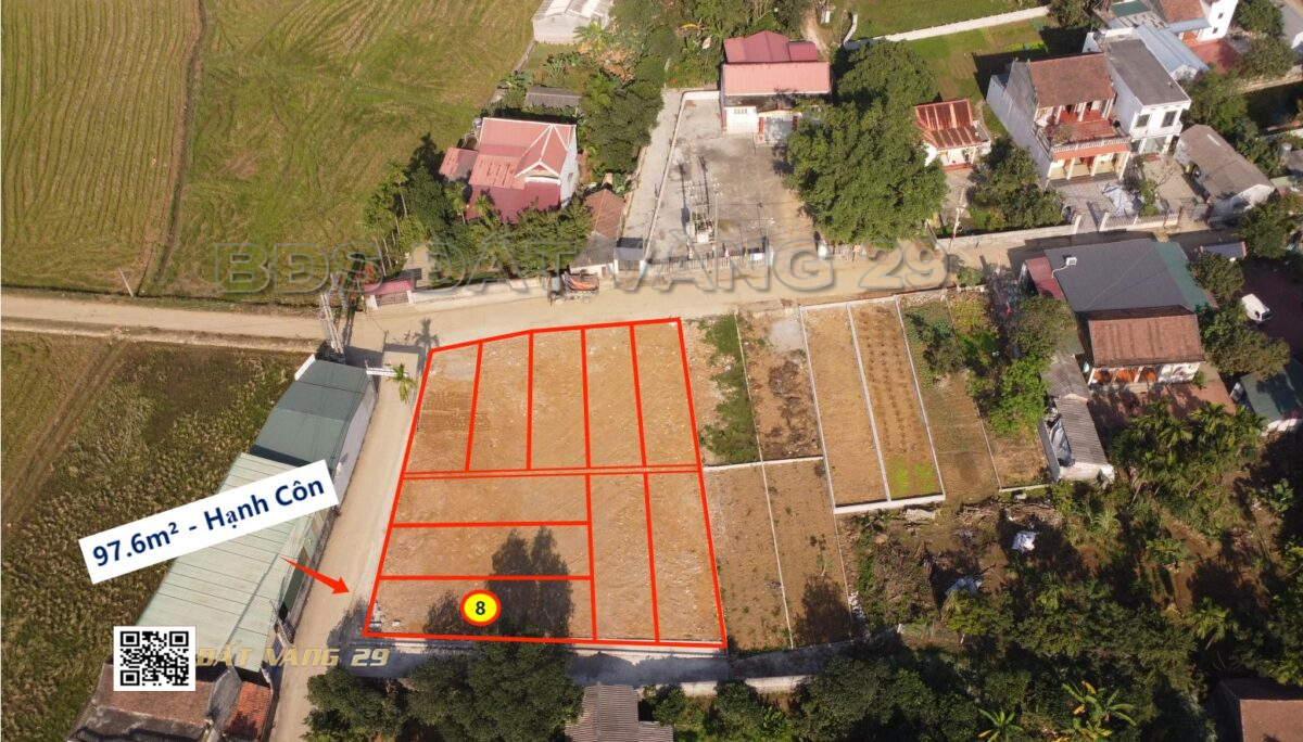Cần bán lô đất phân lô Hạnh Côn diện tích 97.6m², vị trí đẹp, nằm trong khu dân cư hiện hữu, hạ tầng ổn định, phù hợp mua ở hoặc đầu tư sinh lời.