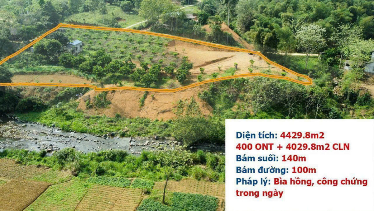 Đất ở (thổ cư): 400m², còn lại là đất trồng cây lâu năm (CLN)