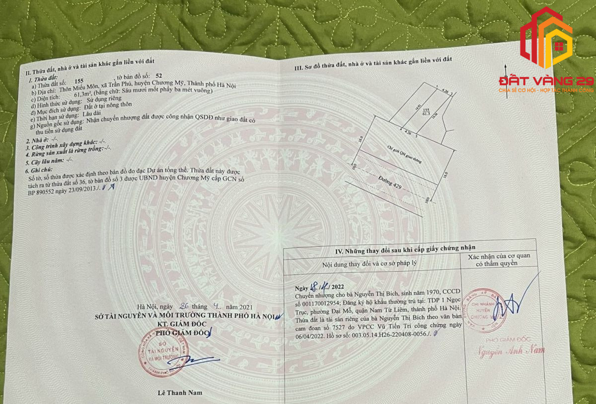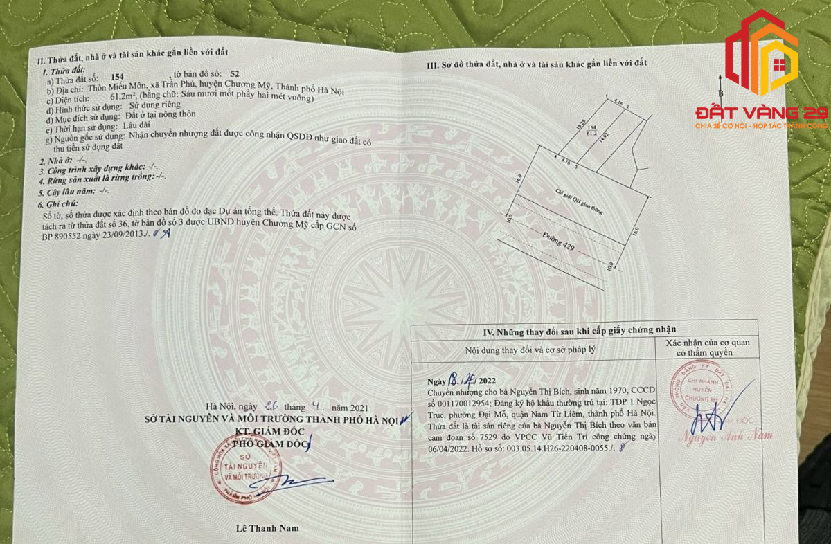 Trang chủ - Dự án - Đất thổ cư - đất ở - Bán đất mặt đường ô tô tránh nhau ở Miếu Môn – Chương Mỹ _ Hà Nội S=61.3m2