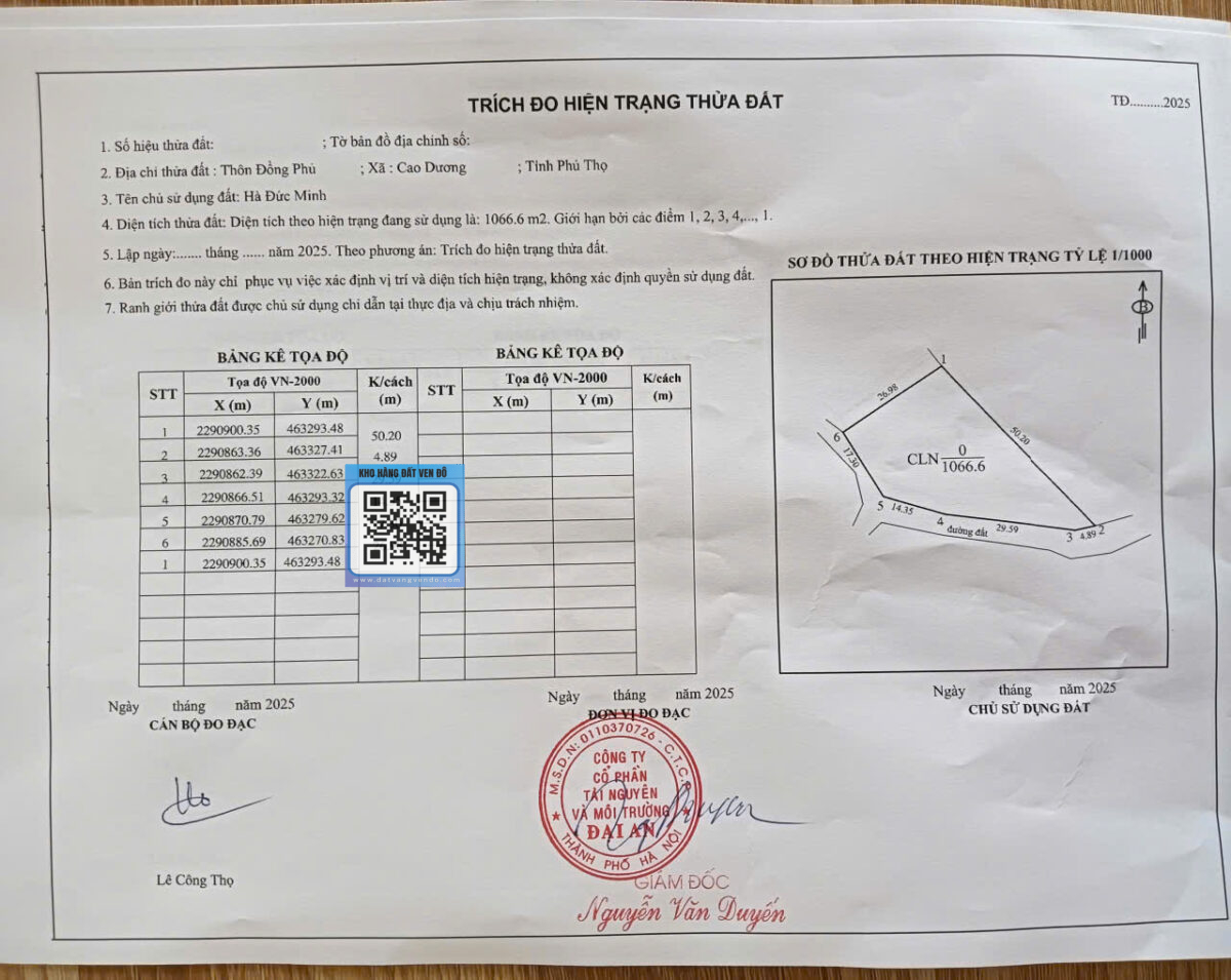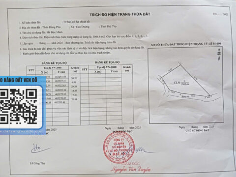 Diện tích: 1066,6m² – Hướng Tây Nam – Đất bằng phẳng, phù hợp làm nhà vườn hoặc đầu tư nghỉ dưỡng