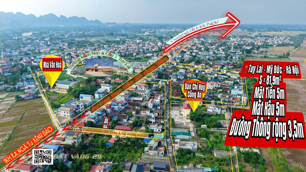 Siêu phẩm đất nền tại xã Tuy Lai – huyện Mỹ Đức – Hà Nội dành riêng cho khách đầu tư nhạy bén! Lô đất vuông vắn – vị trí đẹp – tiềm năng tăng giá vượt trội theo quy hoạch phát triển phía Tây Nam thủ đô.