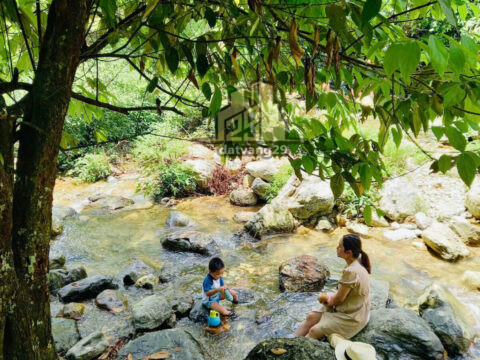 Diện tích: 3000m2 có 400m đất ở, còn lại đất vườn. Bám suối 30m.