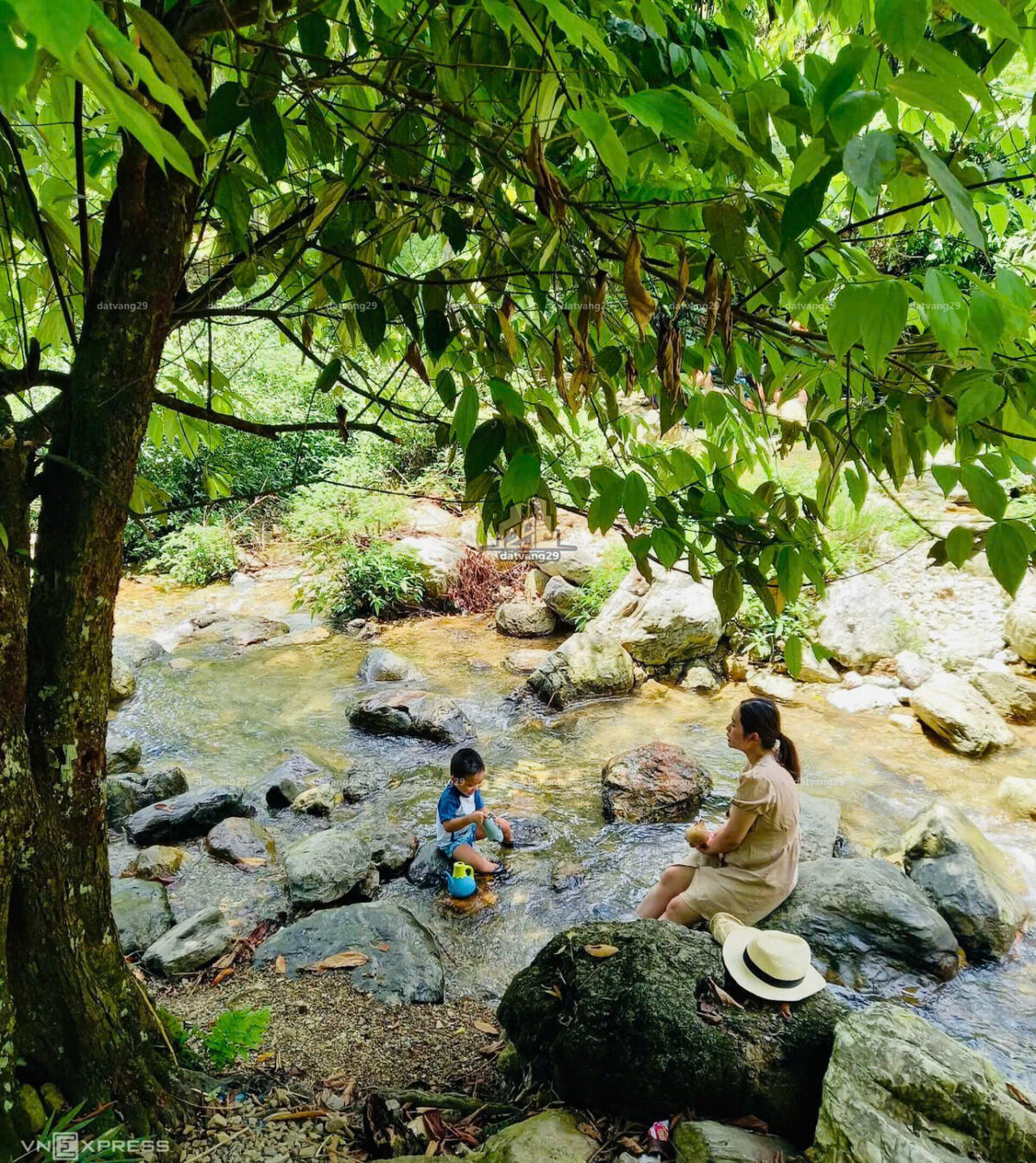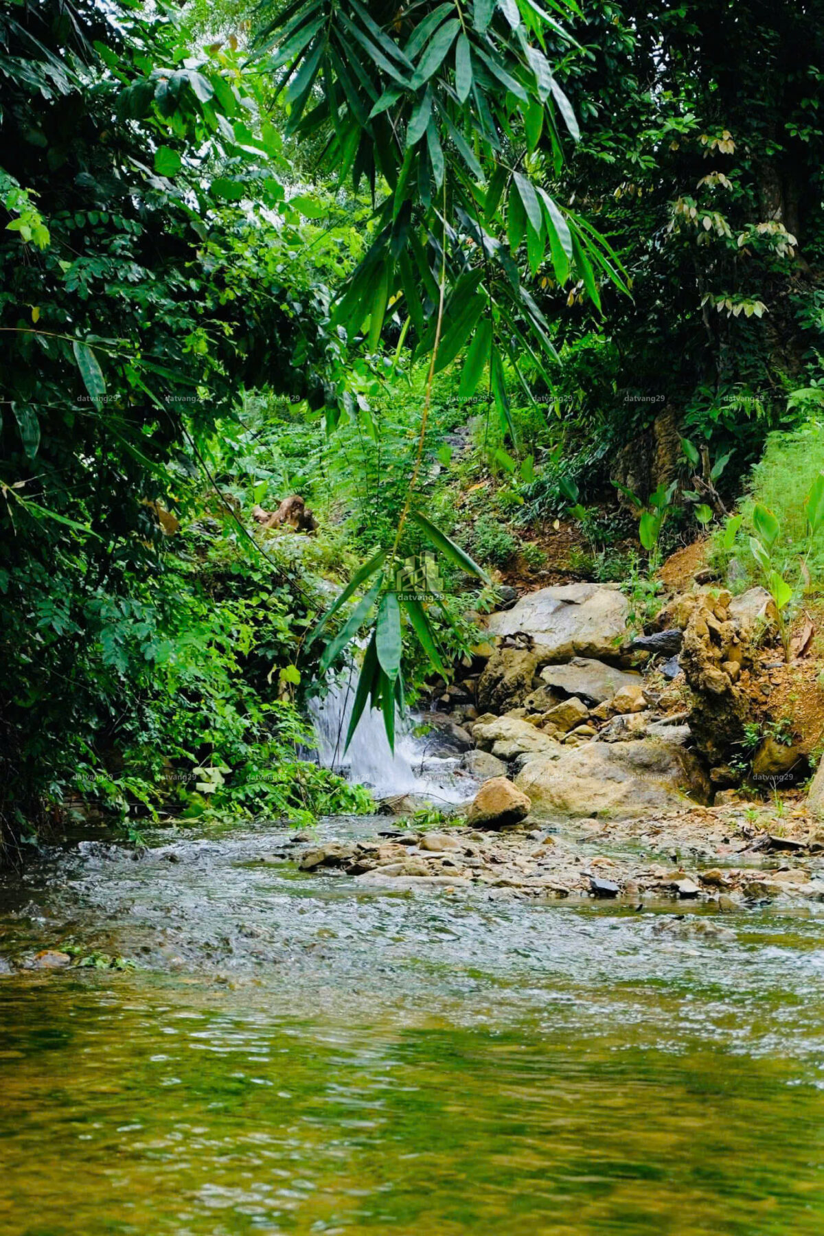 2. hiện trạng đường đất. đi vào đất qua con suối.