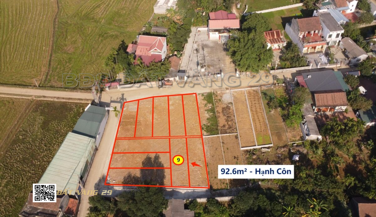 Cần bán lô đất phân lô Hạnh Côn diện tích 92.6m², vị trí đẹp, nằm trong khu dân cư hiện hữu, hạ tầng ổn định, phù hợp mua ở hoặc đầu tư sinh lời.