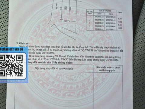 Diện tích: 96m² – Đất thổ cư vuông vắn
