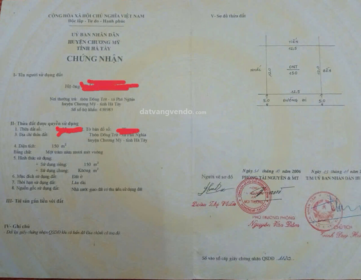 Bán đất thổ cư đẹp tại Phú Nghĩa, Chương Mỹ, Hà Nội – 150m2