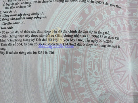 Bán đất thổ cư đẹp tại Tuy Lai – Mỹ Đức – Hà Nội – 45m2