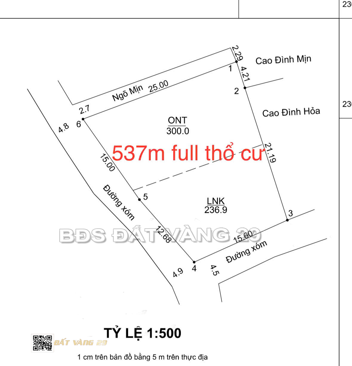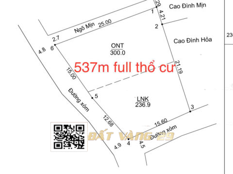Diện tích: 537m² – Đất thổ cư vuông vắn – Lô góc 3 mặt tiền Cực đẹp