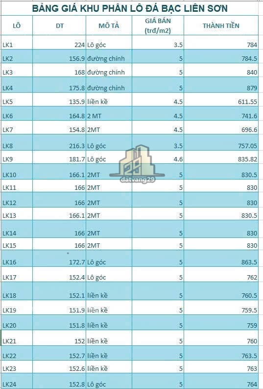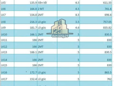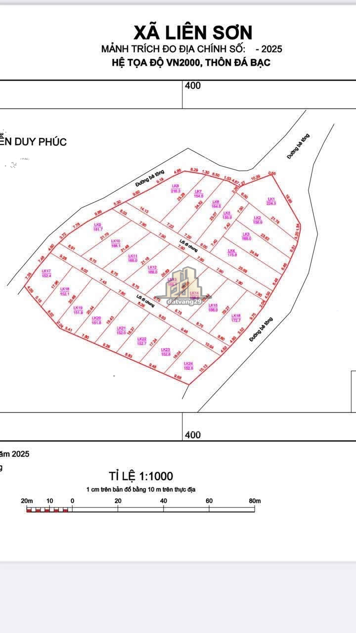 Diện tích: S=152m đã chia làm 24 lô