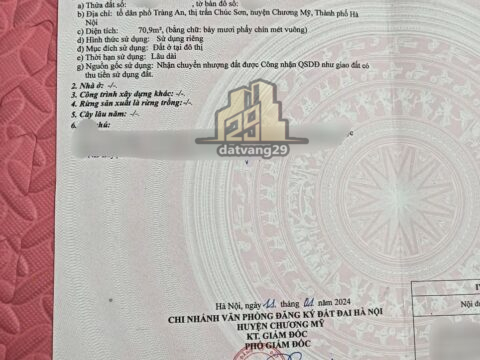 BÁN ĐẤT THỔ CƯ Ở Tổ dân phố Tràng An – CHƯƠNG MỸ – HÀ NỘI