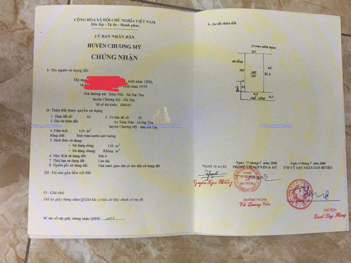 Bán đất thổ cư Tại Đại yên, Chương Mỹ, Hà Nội –