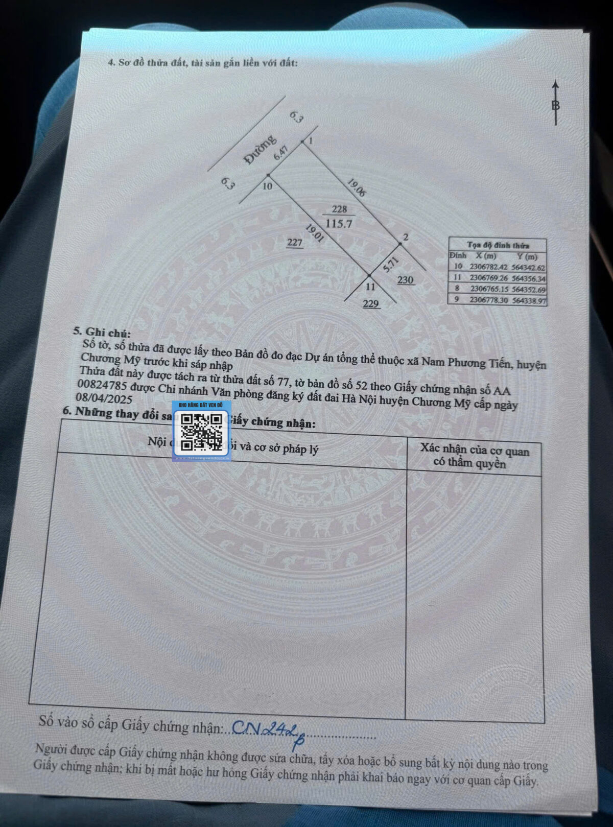 📐 Diện tích: 115,7m² full thổ cư ( ngang 6,47m – Dài : 19,01m )