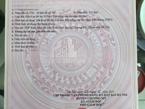 – Giao thông kết nối về Hà Đông – Mỹ Đình – Hòa Bình cực nhanh Tiện ích xung quanh: Dân cư đông đúc, gần chợ, trường học, bến xe Xuân Mai, khu đô thị mới…