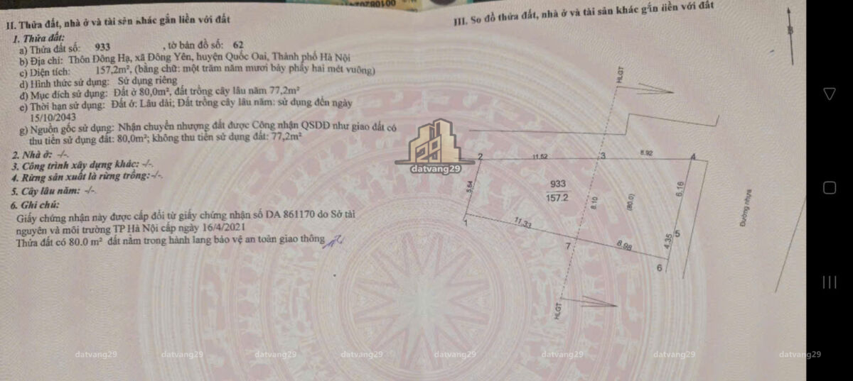 📐 Diện tích: 157.2m² | 📍 Vị trí đắc địa tại xã Đông Yên – Quốc Oai – Hà Nội