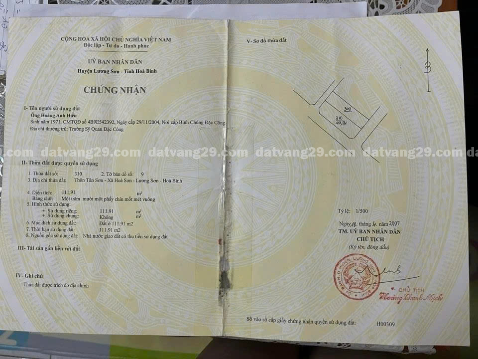 Bán thửa đất ở khu phân lô Phòng cháy chữa cháy 305 Thôn Tân Sơn – Hoà Sơn- Lương Sơn – Hoà Bình
