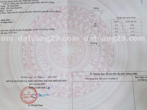 Tôi chính chủ muốn bán miếng đất 240m² full đất ở mặt tiền 11m, đã chia thành 2 sổ đỏ vuông vắn (mỗi sổ 120m², mặt tiền 5,5 m) tại Thôn Ba Nhà, xã Yên Sơn, huyện Quốc Oai, giáp ranh với Hoài Đức, hướng Nam, ô tô vào đất. Vốn là đất giãn dân từ xưa nên đã phân lô vuông vắn như đất đấu giá.