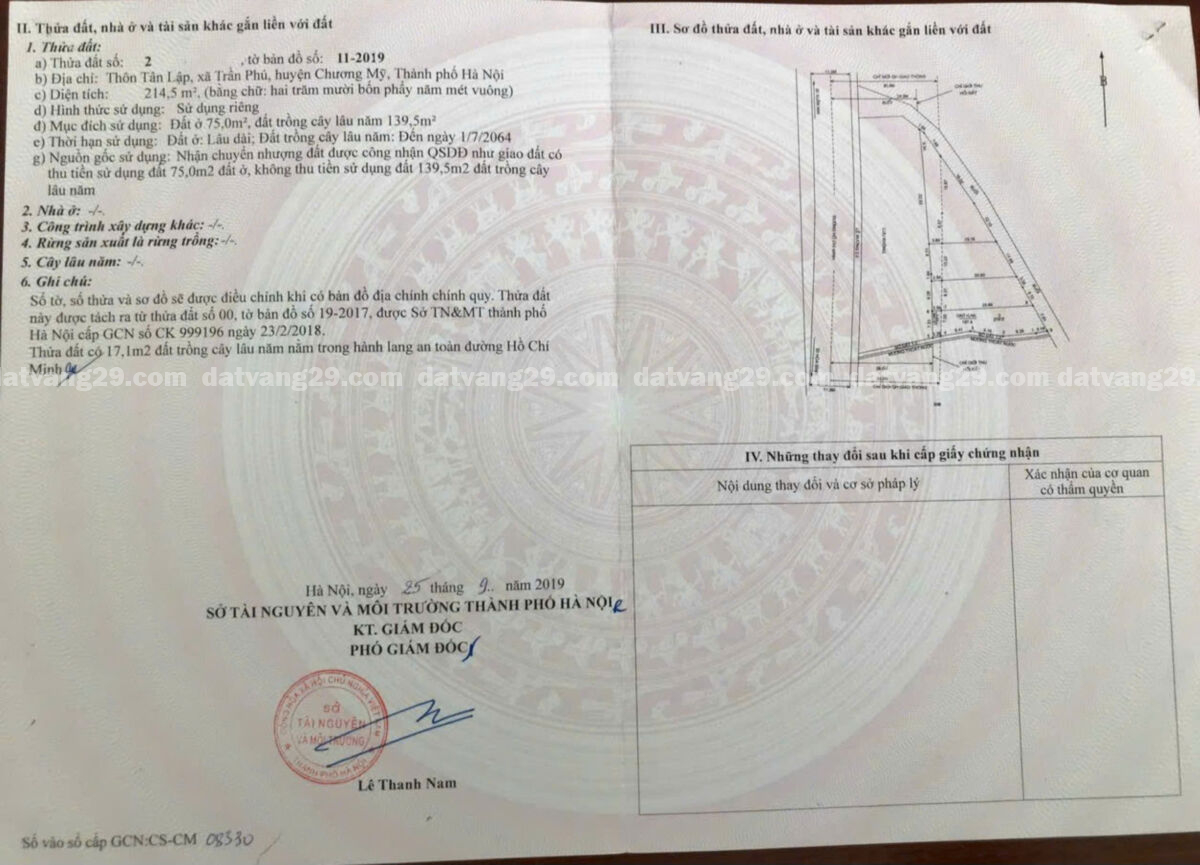 – Chính Chủ gửi em bán lô đất 214.5m, mặt đường Hồ Chí Minh, địa phận xã Trần Phú, Chương Mỹ, HN